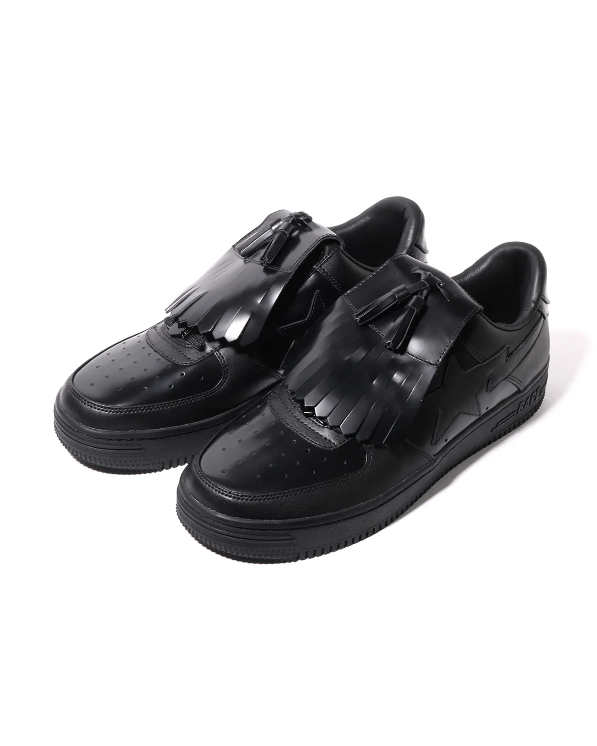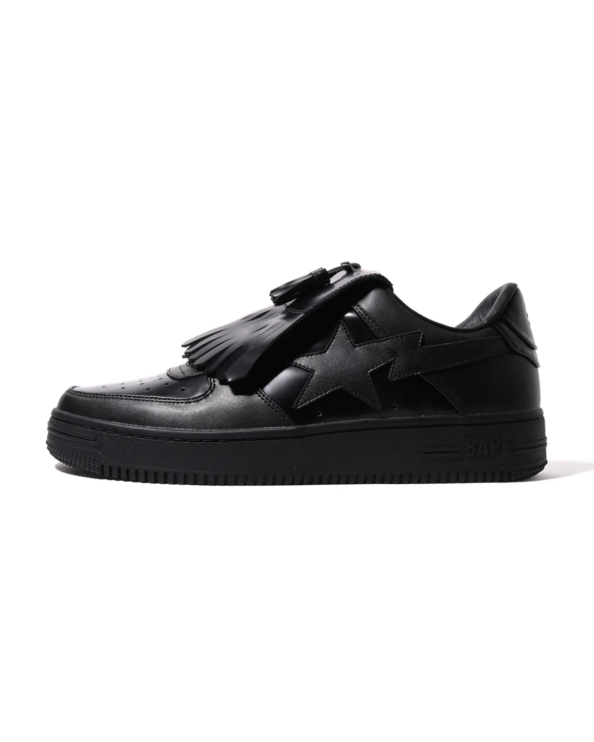 The BAPE STA Quilt Tassel is a stylish low-top sneaker designed for everyday wear. Made from high-quality leather, it offers a clean and modern look with the famous BAPE STA logo on the sides. The all-black design makes it easy to match with any outfit, whether casual or street style. With a comfortable inner lining and a strong rubber sole, this sneaker provides both comfort and durability, making it a great choice for daily use and sneaker lovers.