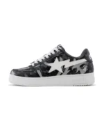 The BAPE X Clot Egra Camo BAPE STA M2 is a stylish low-top sneaker designed for everyday wear. Made from high-quality leather, it offers a clean and modern look with the famous BAPE STA logo on the sides. The all-black design makes it easy to match with any outfit, whether casual or street style. With a comfortable inner lining and a strong rubber sole, this sneaker provides both comfort and durability, making it a great choice for daily use and sneaker lovers.