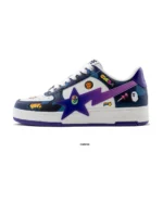 The BAPE X Mr Color Camo BAPE STA Os Men is a stylish low-top sneaker designed for everyday wear. Made from high-quality leather, it offers a clean and modern look with the famous BAPE STA logo on the sides. The all-black design makes it easy to match with any outfit, whether casual or street style. With a comfortable inner lining and a strong rubber sole, this sneaker provides both comfort and durability, making it a great choice for daily use and sneaker lovers.